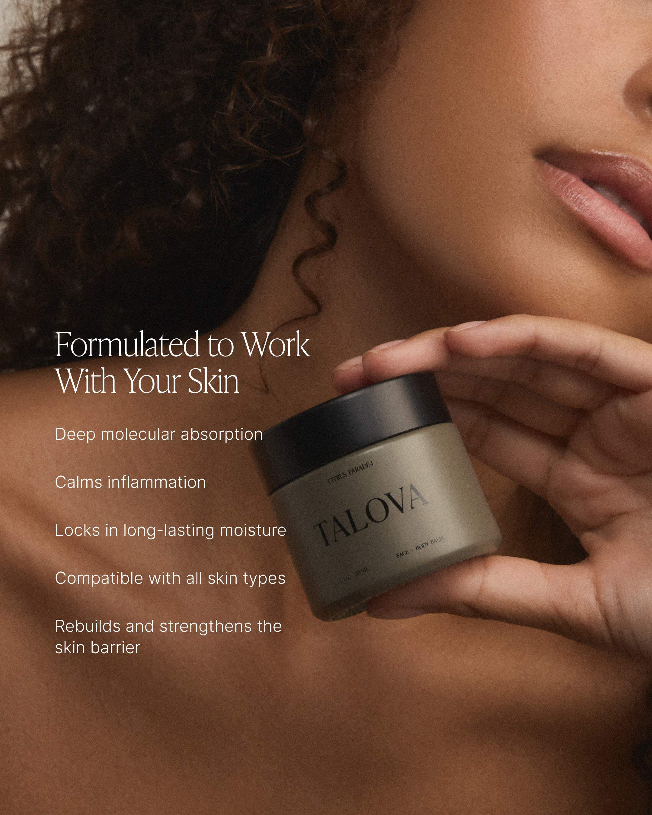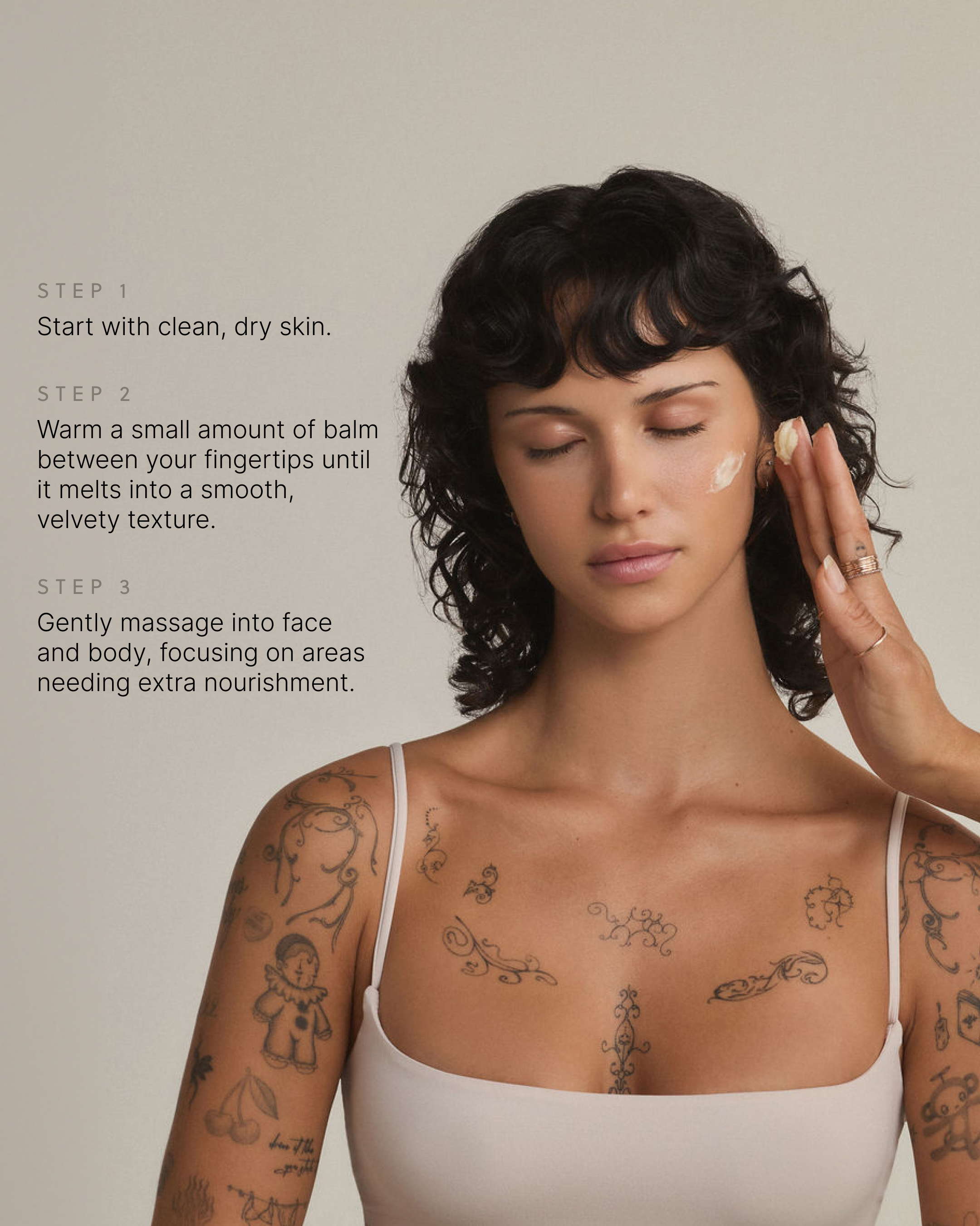 Velvety in texture and fast-absorbing, this balm works from face to body—leaving skin calm, smooth, and visibly replenished.